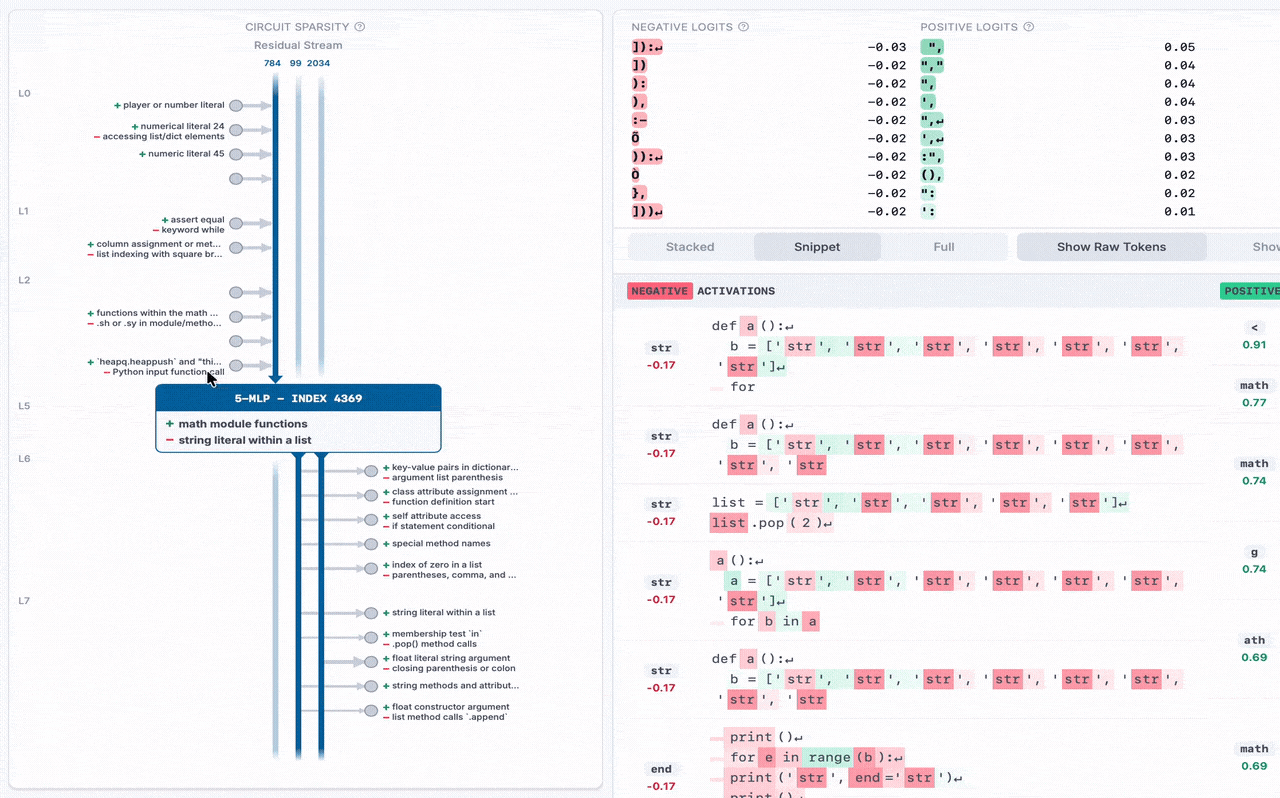 For the recent Weight-Sparse Transformers paper, we collaborated with OpenAI to release the following for the Python code model they trained: