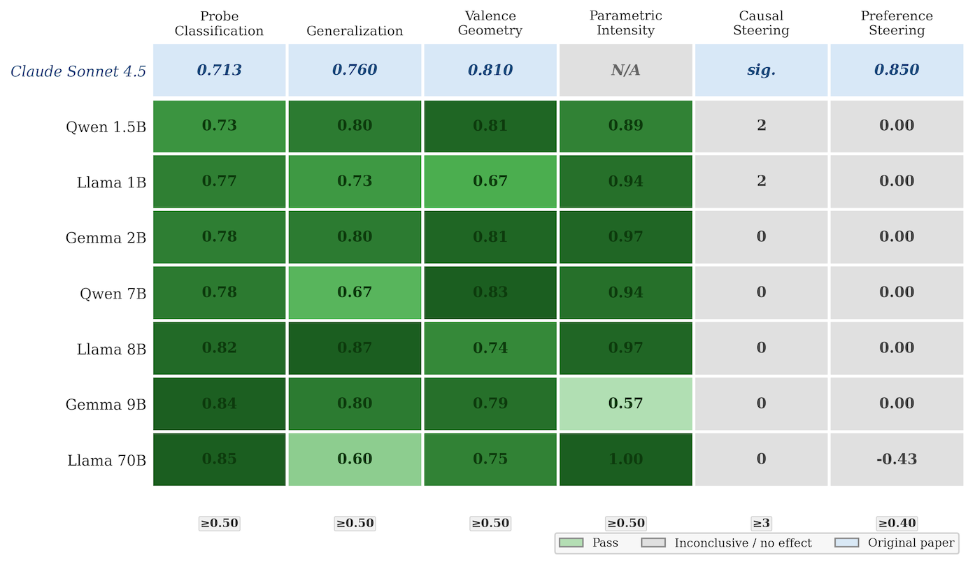 Hi! I'm currently learning mech interp research through the ARENA 3.0 curriculum. I built a harness to kickstart a shared resource to replicate more papers across models: MechInterp-Replication. In the repo I used the harness for an initial replication attempt: a draft replication of Anthropic's (Sofroniew et al.'s) recent Emotion Concepts paper across 6 open-source models (Llama / Qwen / Gemma, 1B–9B). Check it out and let me know what you think! And please use it to replicate a paper of your choosing, submit it, or suggest ways to improve the harness or existing replications.